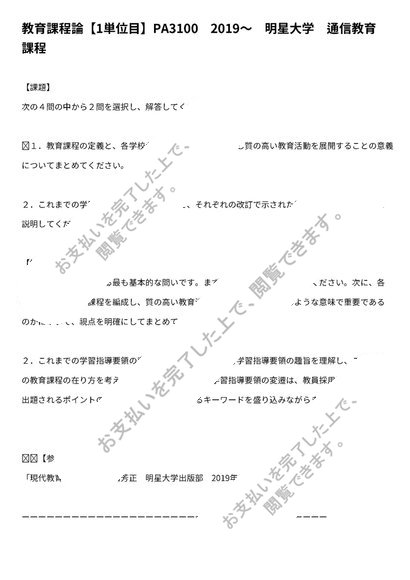 教育課程論【1単位目】PA3100 2019〜 明星大学 通信教育課程