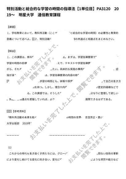 特別活動と総合的な学習の時間の指導法【1単位目】PA3120 2019〜 明星大学 通信教育課程