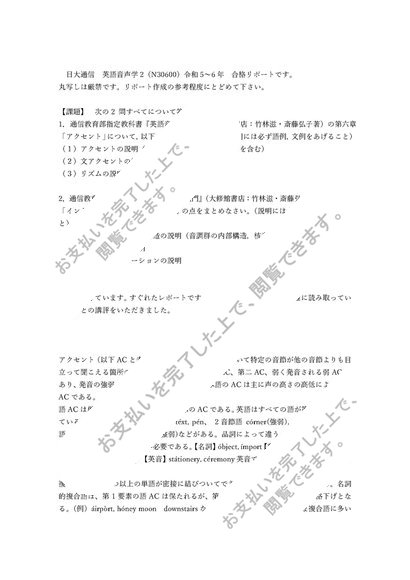 【日大通信】英語音声学2 合格リポート 令和5~6年