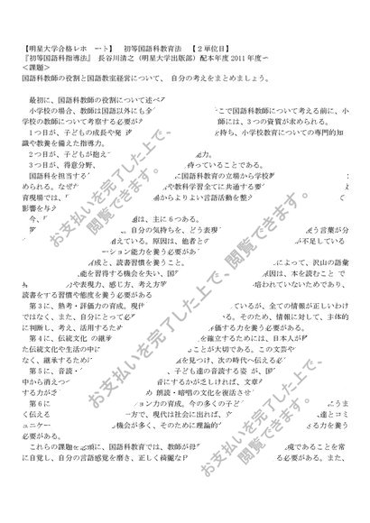 【明星大学合格レポート】 初等国語科教育法 【2単位目】
