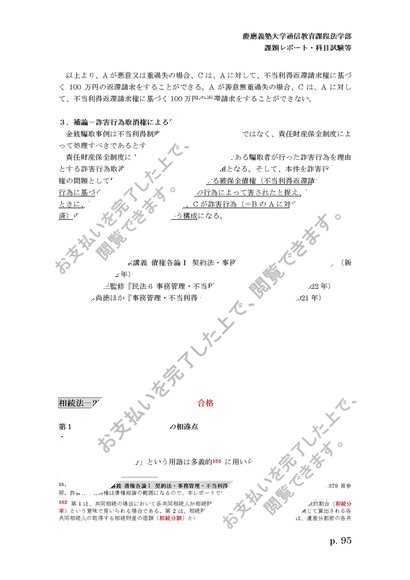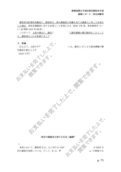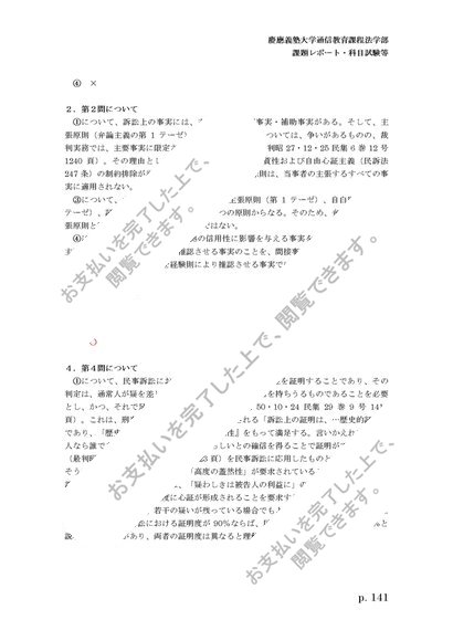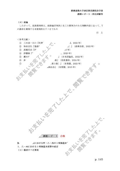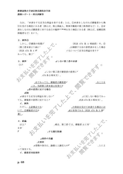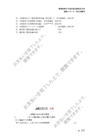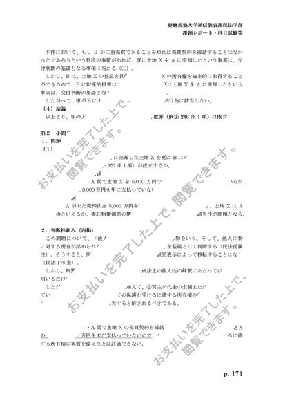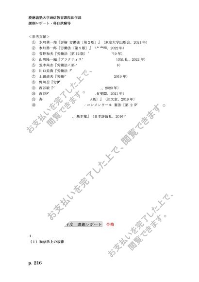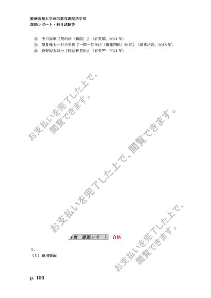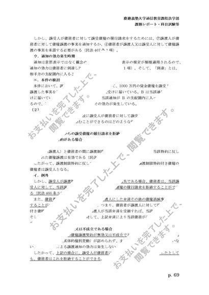 【慶應通信】慶應義塾大学通信教育課程法学部 課題レポート・科目試験等