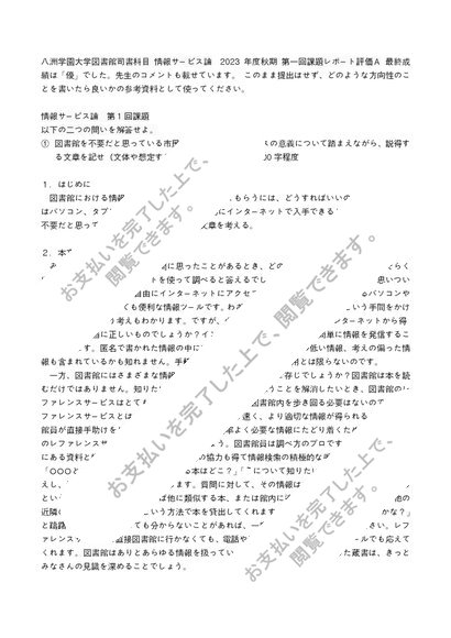 八洲学園大学 情報サービス論 第1回課題【2023年度秋期】