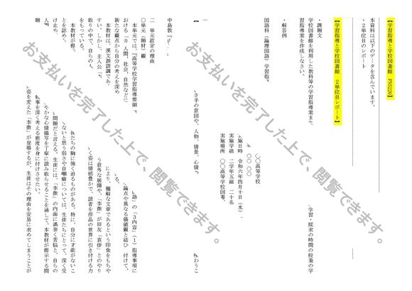 学習指導と学校図書館 2単位目のみ 合格レポート (国語科の学習指導要領) (明星大学)