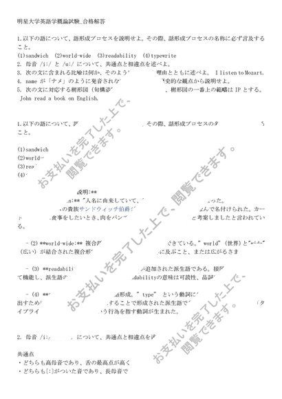 明星大学英語学概論試験_合格解答