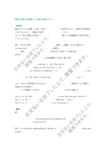 明星大学異文化理解2_1単位目合格レポート
