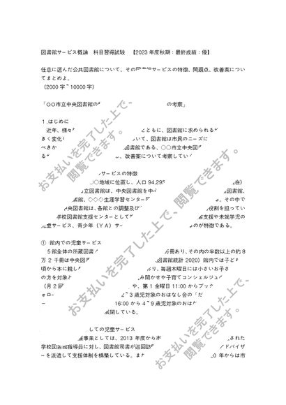 八洲学園大学 図書館サービス概論 科目習得試験 【2023年度秋期】