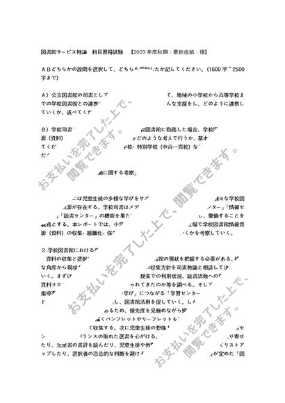八洲学園大学 図書館サービス特論 科目習得試験 【2023年秋期】