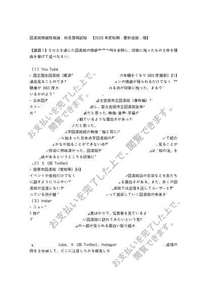 八洲学園大学 図書館情報技術論 科目習得試験 【2023年秋期】