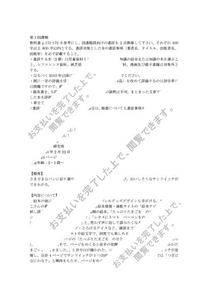 八洲学園大学 2024年 児童サービス論T【評価A】第1回課題