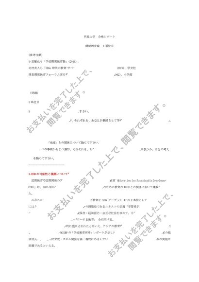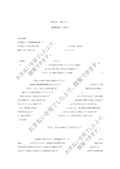 環境教育論 1・2単位目 合格レポート
