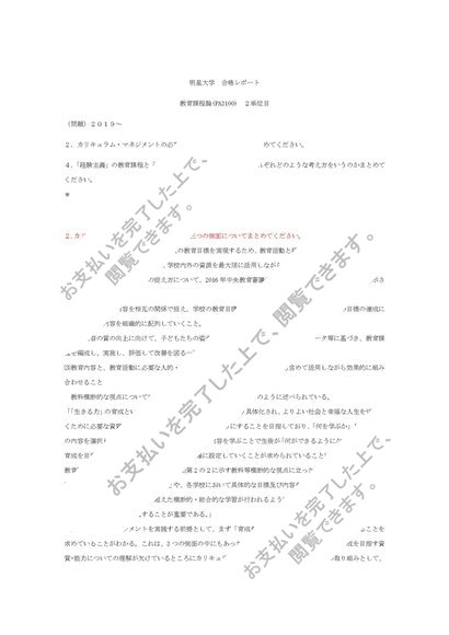 教育課程論(PA3100) 2単位目 合格レポート