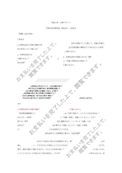 (2024年合格)明星大学 初等社会科教育法【PB2120】 1.2単位目 合格レポート