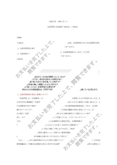 (2024年合格)明星大学 生涯学習と社会教育【PA2250】 1.2単位目 合格レポート