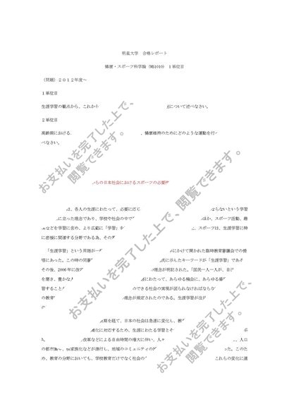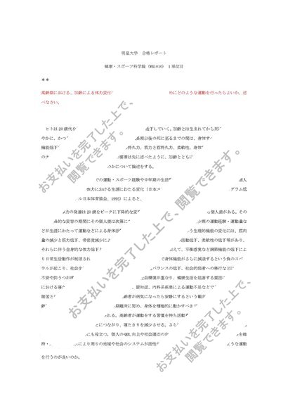 (2024年合格)明星大学 健康・スポーツ科学論【WB1010】 1.2単位目 合格レポート