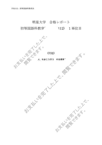 (2024年合格)明星大学 初等国語科教育法【PB2112】 1単位目 合格レポート
