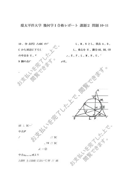 2024 環太平洋大学 通信教育課程 幾何学Ⅰ 2単位目 問題10-11