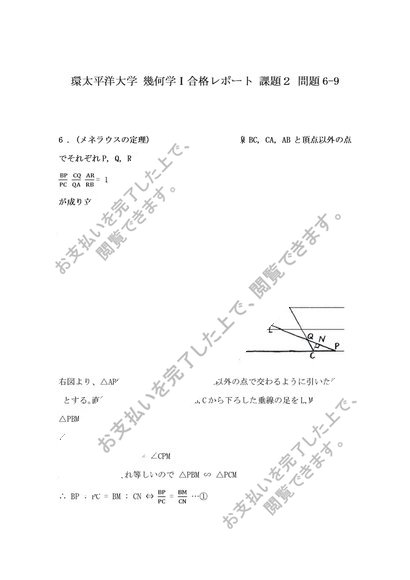 2024 環太平洋大学 通信教育課程 幾何学Ⅰ 2単位目 問題6-9