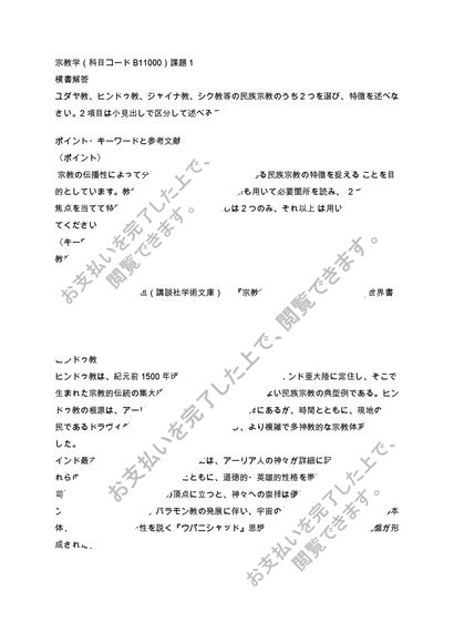 【日大通信】宗教学(科目コードB11000)課題1 令和5~6年度【2023年4月~2025年3月】