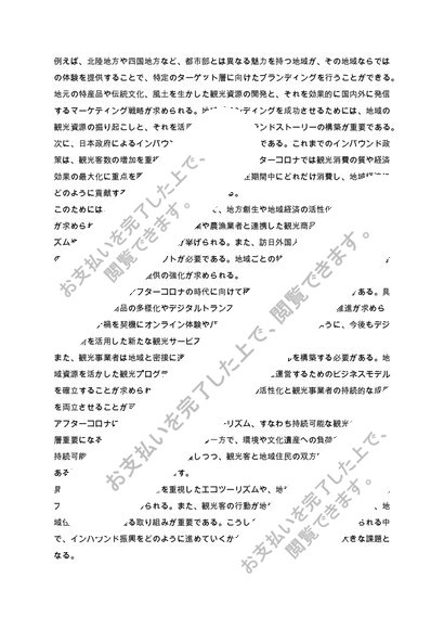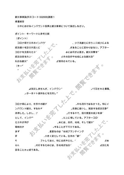 【日大通信】観光事業論(科目コードS32000)課題1 令和5~6年度【2023年4月~2025年3月】