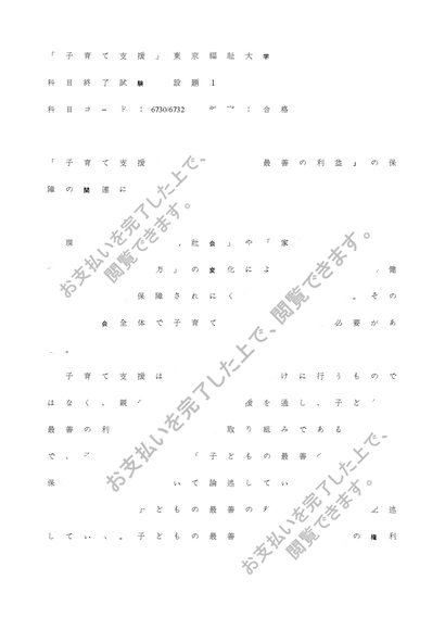 子育て支援【合格】「子育て支援と『子どもの最善の利益』の保障の関連について」東京福祉大学