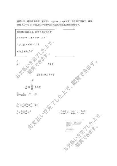 2024年度 明星大学 通信教育課程 PF2060 解析学2 科目修了試験