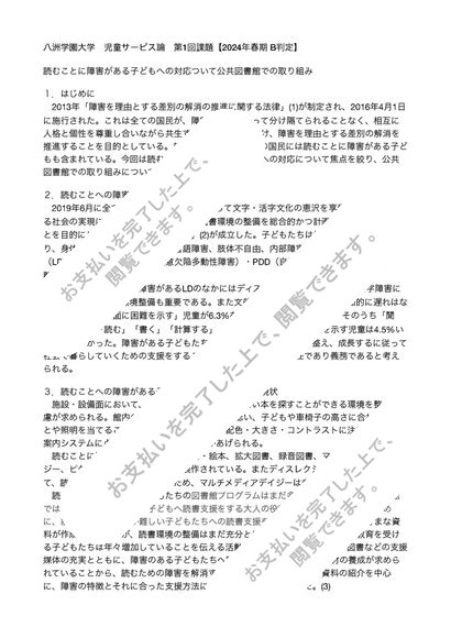 八洲学園大学 児童サービス論 第1回課題【2024年春期 B判定】