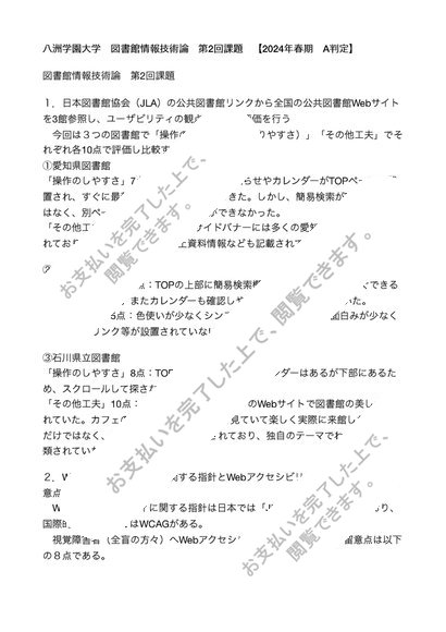 八洲学園大学 図書館情報技術論 第2回課題 【2024年春期 A判定】