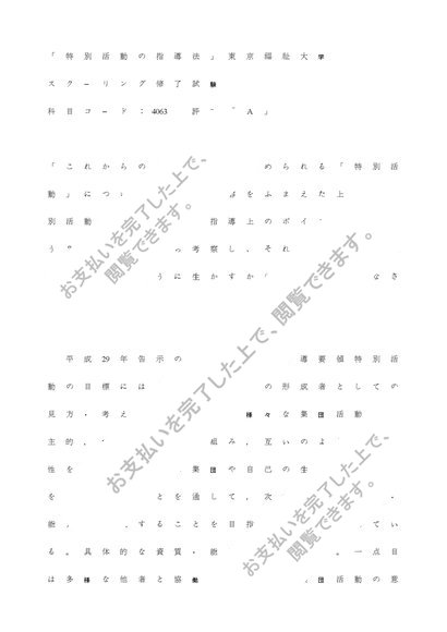特別活動の指導法【A評価】「これからの学校現場に求められる「特別活動」について、授業内容をふまえた上で「特別活動の意義」と「指導上のポイント」という2つの観点から考察し、それを自らの教育実践にどのように生かすかについて述べなさい」東京福祉大