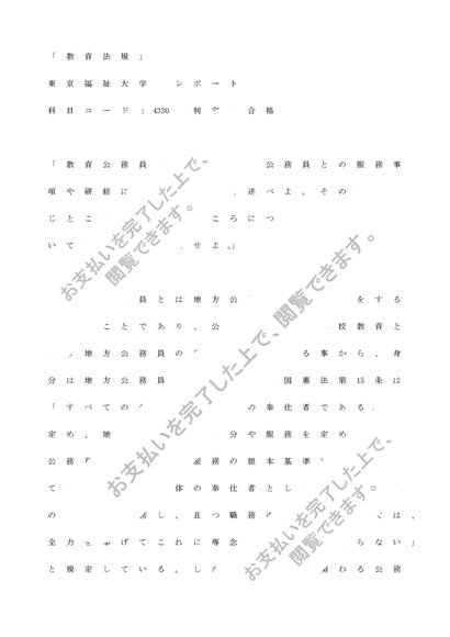 教育法規【合格】「教育公務員と一般の地方公務員との服務事項や研修に関する内容を述べよ。その際、同じところと異なるところにつ いて整理して論述せよ」東京福祉大学