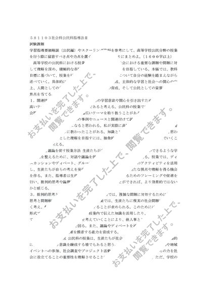 星槎大学 581103社会科公民科指導法Ⅱ 試験課題