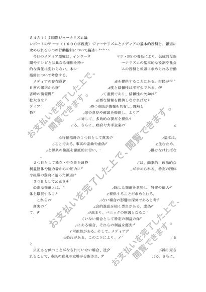 星槎大学 545117国際ジャーナリズム論(世界の見方とジャーナリズム) レポート