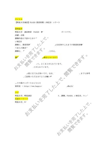 【明星大学通信】PA1020 教育原理 1単位目 レポート