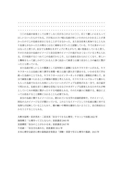 無料で見れます! 東京福祉大学 基礎演習Ⅰ レポート A評価 設題:教科書27頁の形容詞対を用いて、自分の名前のイメージと自分自身についてのイメージを測定し、それぞれのイ メージのずれについて考察せよ。