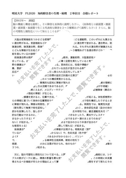 【合格レポート】明星大学 PL2020 知的障害者の生理・病理2単位
