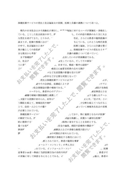 東京福祉大学 保健医療 レポートA評価 設題:保健医療サービスの変化と社会福祉士の役割、医療と介護の連携について述べよ。