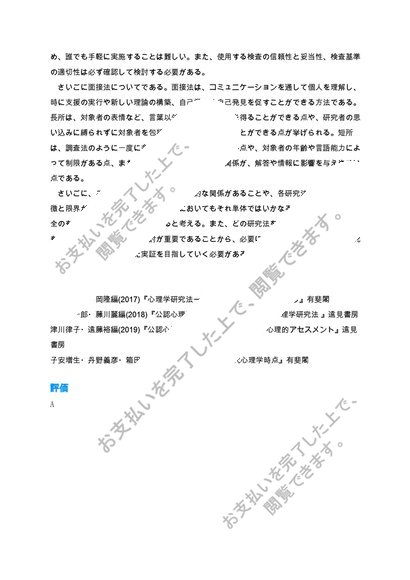 聖徳大学 「調査法」「観察法」「検査法」「面接法」のそれぞれの研究方法の長所と短所 (心理学研究法) 評価:A