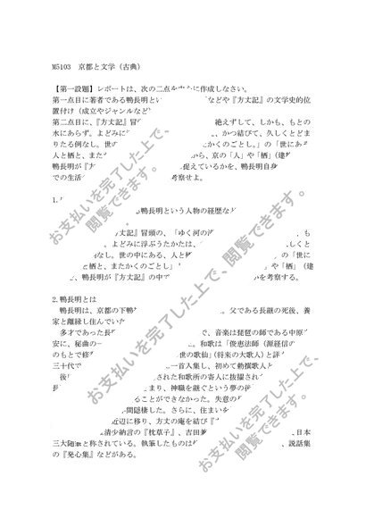 【リポート・最終科目試験セット】M5103京都と文学(古典)