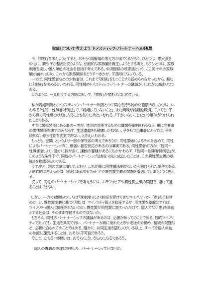 家族について考えよう ドメスティック・パートナーへの随想