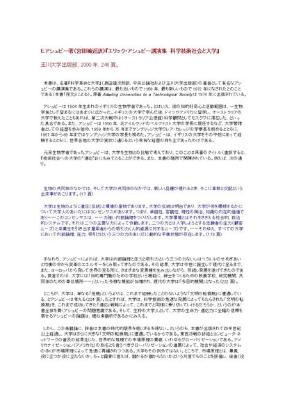書評:エリック・アシュビー講演集 科学技術社会と大学