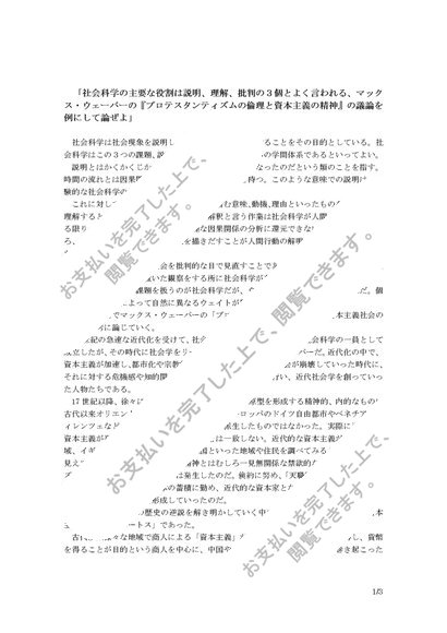 マックス=ウェーバーの「プロテスタンティズムの倫理と資本主義の精神」を社会科学の例をだして論ぜよ