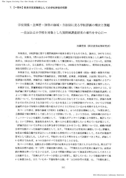 学校規模・企画者・評価の領域・方法別に見る学校評価の現状と課題 全国公立小学校を対象とした質問紙調査結果の報告を中心に