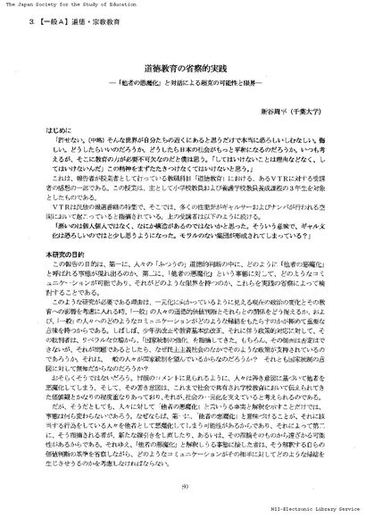 道徳教育の省察的実践 「他者の悪魔化」と対話による超克の可能性と限界