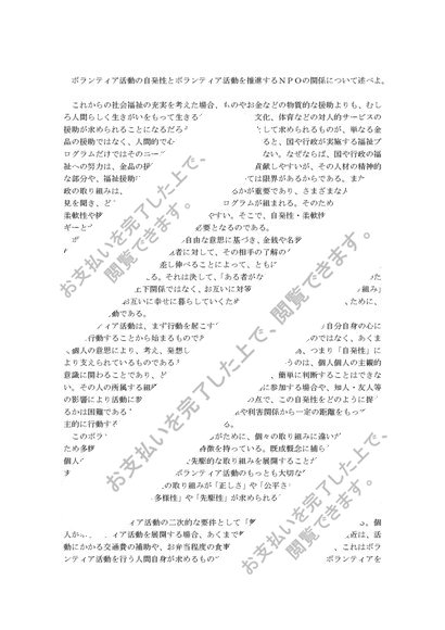 ボランティア活動の自発性とボランティア活動を推進するNPOの関係について述べよ。