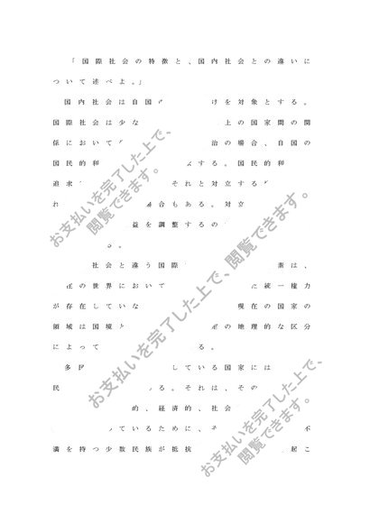 国際社会の特徴と、国内社会との違いについて述べよ。
