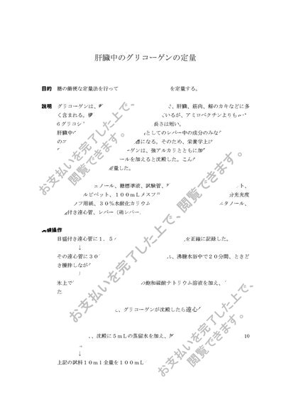 肝臓中のグリコーゲンの定量