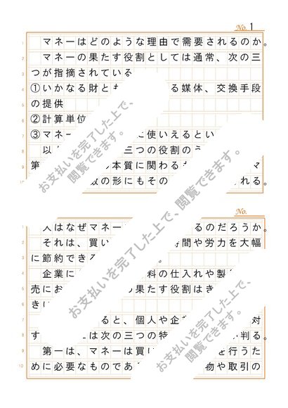 マネーの役割とマネーの需要と供給を説明し、マネーの需要曲線、供給曲線およびそれらの関係について述べなさい。 分冊1原稿