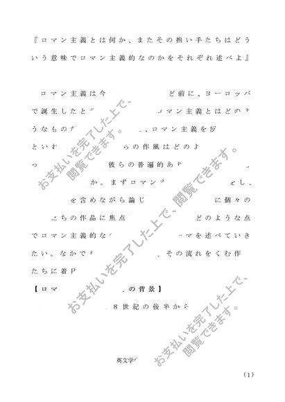 佛教大 英文学史 A判定 ロマン主義とは何か、またその担い手 第1設題 ロマン主義 P6301