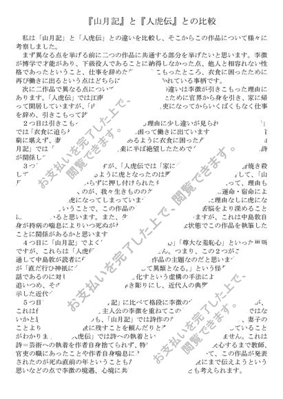 『山月記』と『人虎伝』との比較