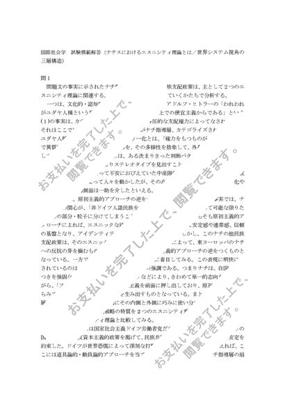 国際社会学 試験模範解答(ナチスにおけるエスニシティ理論とは/世界システム視角の三層構造)