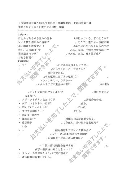 【医学部学士編入KALS生命科学】要綱集要約生命科学第三講